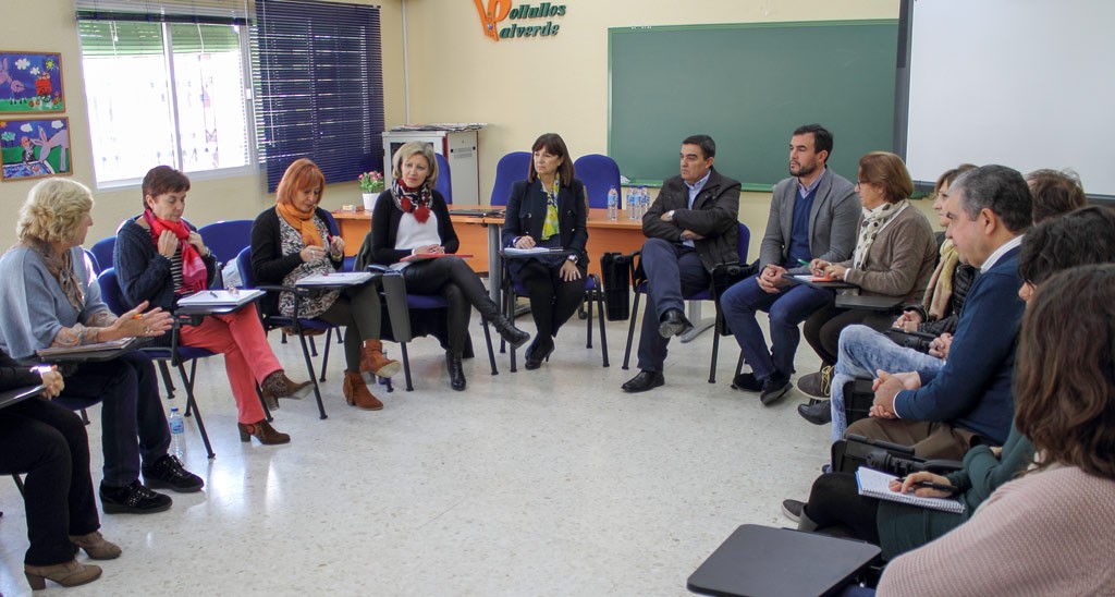 El Alcalde, Rubén Rodríguez, ha recibido de nuevo en la mañana de ayer al Delegado de Educación, Sr. Vicente Zarza, esta vez para visitar varios centros educativos de la localidad. Entre ellos el CEP Bollullos/Valverde para conocer de primera mano el trabajo que se está desarrollando y las necesidades y mejoras del edificio, en donde están instalados los servicios del propio Centro de Profesores, que se encarga de la formación de más de 2000 profesores/as de centros públicos de la comarca, y el Equipo de Orientación Externa (EOE), equipo integrado por psicólogos, médicos y orientadores, que atienden las necesidades de los centros de la zona. A está reunión también ha estado invitada la Jefa de Servicio de formación Sra. Dña. Charo Romeu.